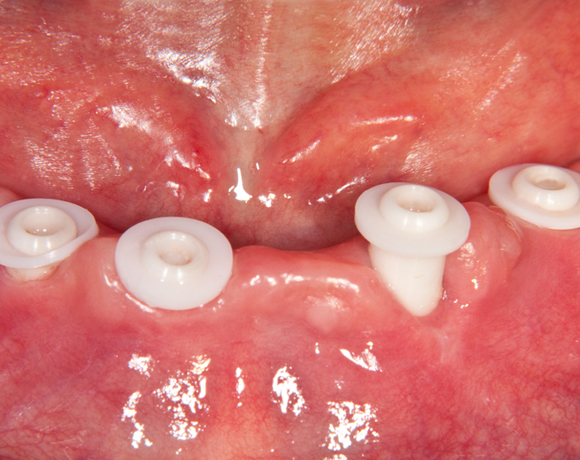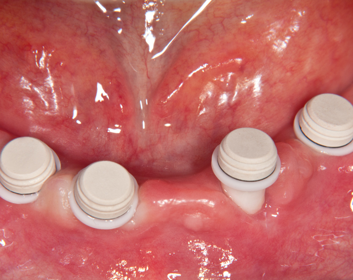 Bild 01: Eingeheilte Zerameximplantate mit Einheilkappen