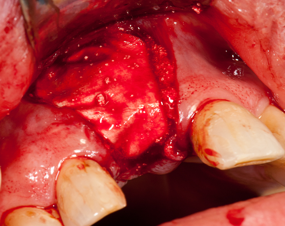 Bild 04: Eröffnung des OP- Gebietes durch einen Schleimhautlappen