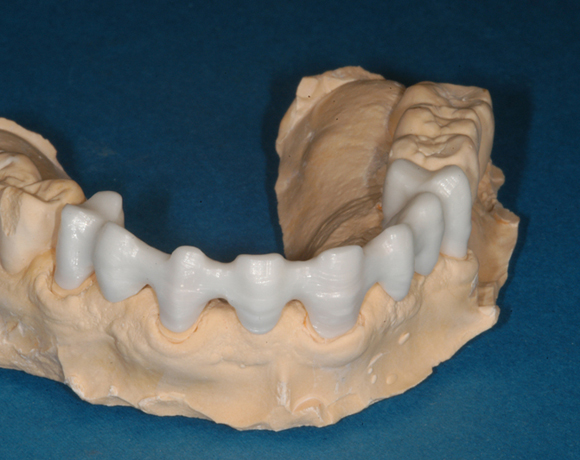 Mit e.max Zirpress gab es nun die Möglichkeit über Zirkongerüste zu pressen, darauf zu schichten und damit eine sehr hohe Ästhetik zu erzielen. Die Stabilität für große Brücken wurde durch das Zirkongerüst gegeben.