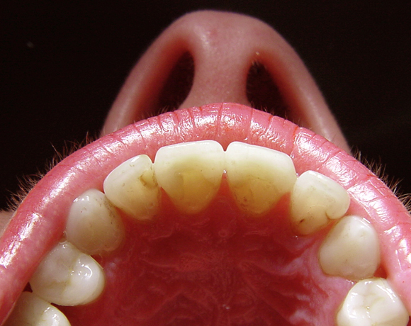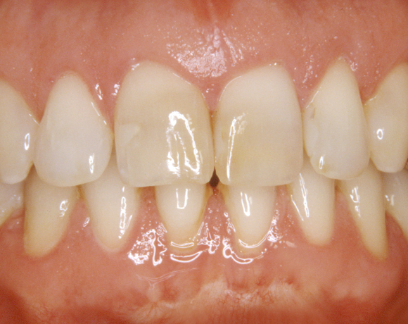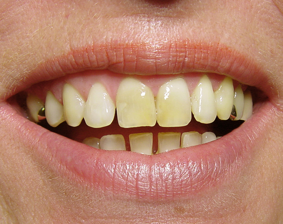 Im vorliegenden Patientenfall war die Patientin mit der Verfärbung ihrer beiden mittleren Schneidezähne nicht mehr zufrieden, sie wollte eine Veneerversorgung.