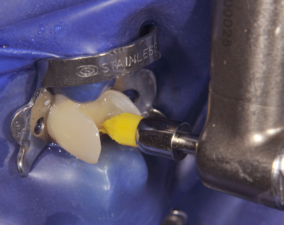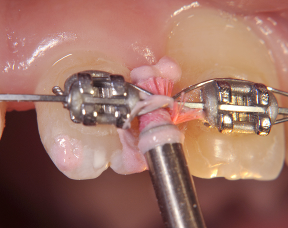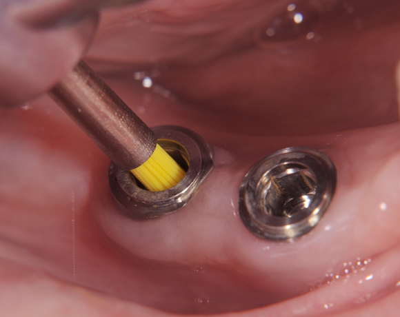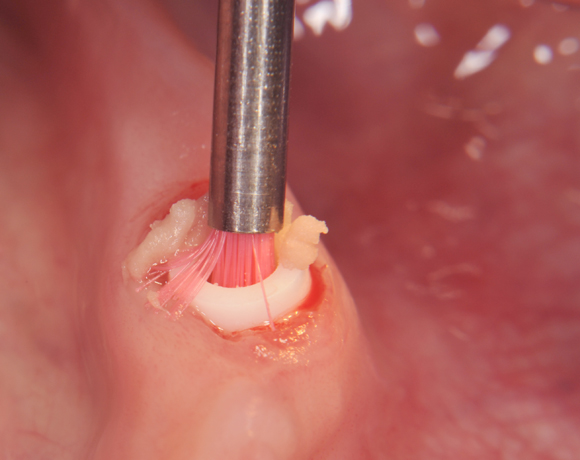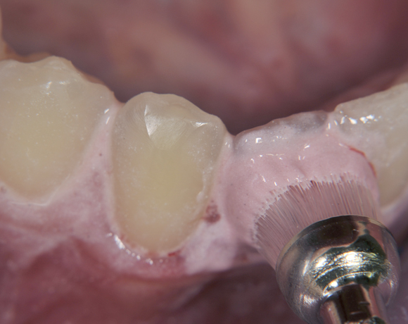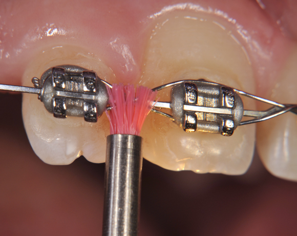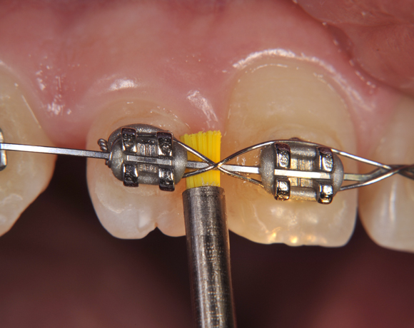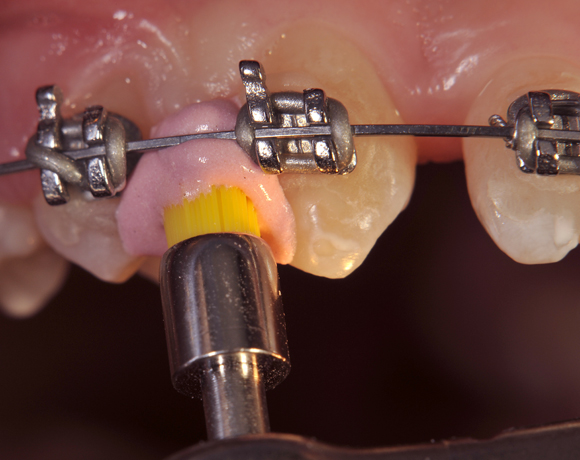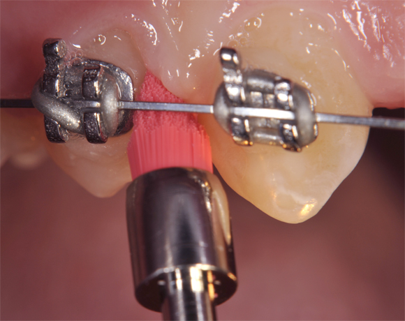 Ein wichtiges Einsatzgebiet für Prophylaxebürstchen ist während einer kieferorthopädischen Behandlung die Reinigung zwischen den Drahtkonstruktionen, nach Implantateröffnung oder vor dem Einsetzten die Klebeflächen.
