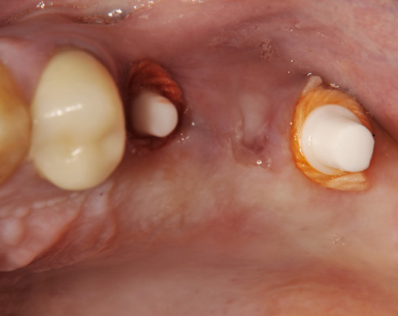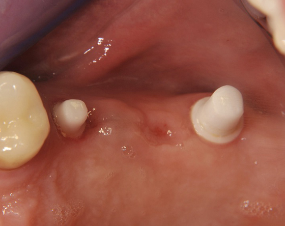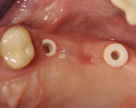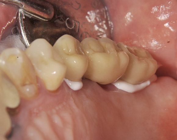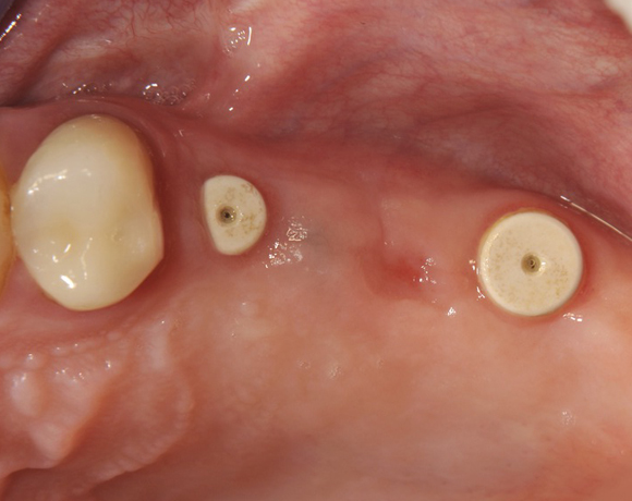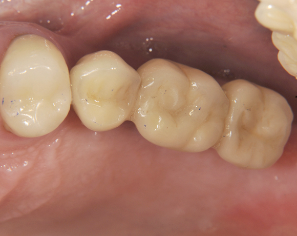 Im vorliegenden Patientenfall wurden für die Zähne 25 und 27 jeweils ein Implantat gesetzt. Nachdem die Implantate eingeheilt waren, wurde 25 – 27 mit einer Brücke versorgt.
