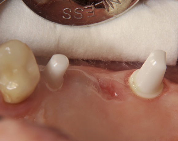 Mit dem zweiteilige vollkeramische Implantat lassen sich Freiendsituationen lösen, damit lässt sich eine Prothese vermeiden.