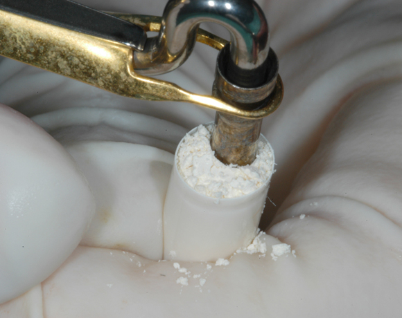 Bild 03: Stanze beim Ansetzen auf der Gingiva
